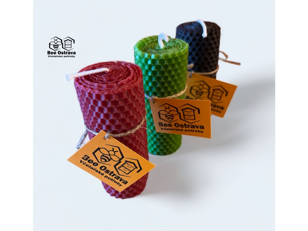 Barevná motaná svíčka ze včelího vosku 10x5 cm