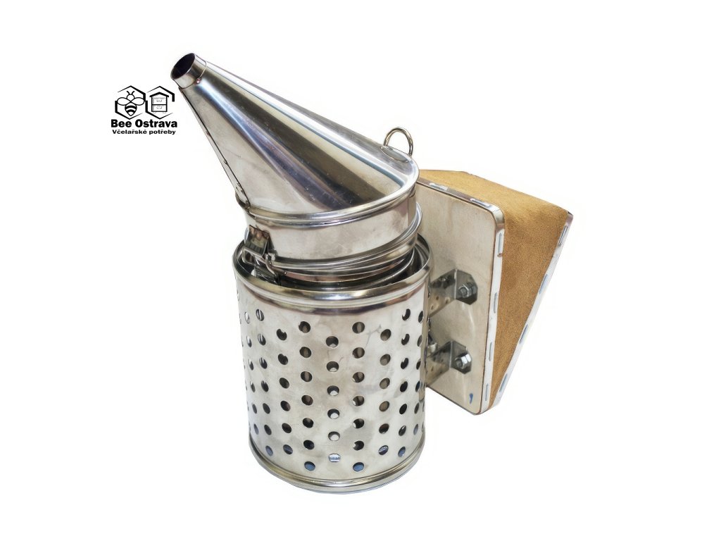 Malý včelařský nerezový dýmák s vložkou je vyrobený z kvalitního nerez materiálu. Včelařský malý nerez dýmák s koženým měchem je důležitá včelařská pomůcka. Bez včelařského dýmáku se neobejde žádný včelař. Včelařský dýmák slouží pro rychlé a bezpečné vypuzení včel z částí úlů, kde chcete pracovat. Kouř z dýmáku včely také výrazně zklidňuje a tím klesá riziko, že vás bodnou. Dýmák má praktický tvar, s dostatečně úzkým hrdlem, aby se dostal takřka všude. Jako náplň dýmáku sloužit buď domácí přípravky nebo speciálně vyráběné knoty. Tradičně včelaři používají do dýmáku suché ztrouchnivělé dřevo, které najdete v každém lese. Včelařský dýmák má praktické držadlo pro snadnou manipulaci a praktický držáček pro pověšení. V tělese dýmáku dochází ke spalování paliva (ztrouchnivělého dřeva nebo speciálních knotů) a vzniklý dým je za pomoci měchu vyháněn komínkem přes lapač jisker. Kouřem zasažené včely tolik nelítají a hlavně nebodají. K dýmáku je i možnost dokoupit náhradní měchy.
