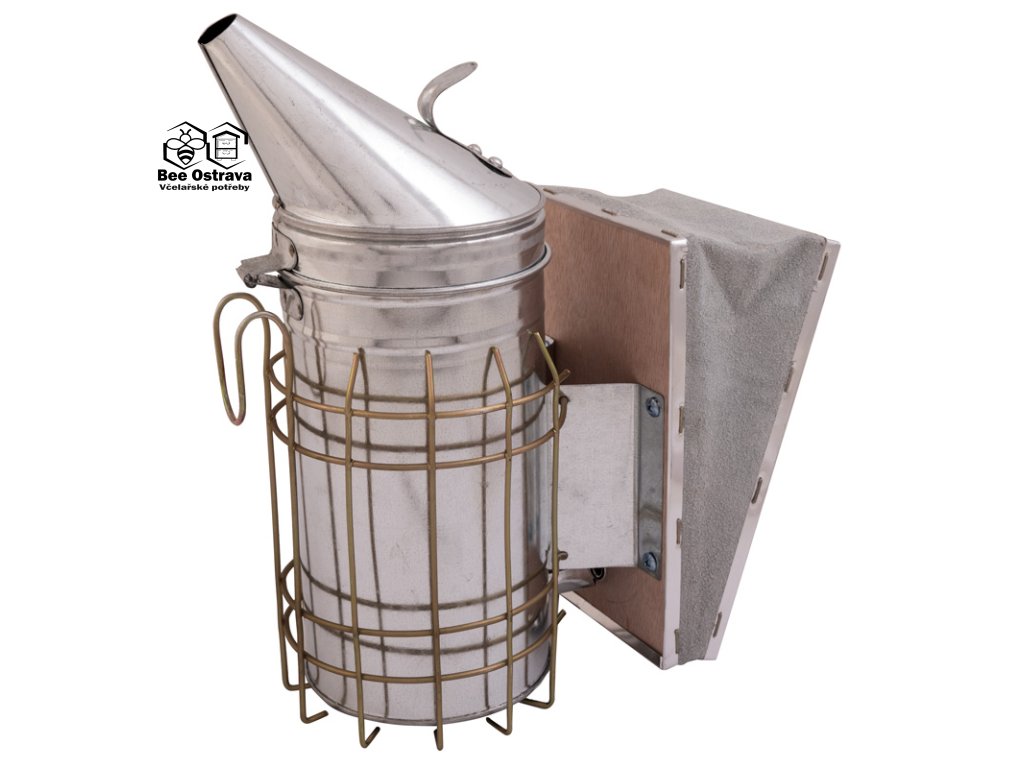 Velký pozinkovaný včelařský dýmák slouží ke zklidnění včel při práci v úlu. Jemný dým pomáhá snížit agresivitu včel a usnadňuje prohlídky, manipulaci s nástavky i vyhánění včel z rojáku.