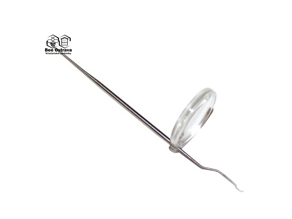Přelarvovací lžička s lupou. Nerezová lžička s dvěma rozdílně tlustými konci. Lupa lze umístit buď na jeden nebo na druhý konec. Velice praktická pomůcka kterou určitě doporučujeme.
