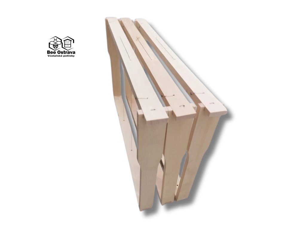 Kvalitní konstrukce včelích rámků o rozměrech 39 x 17 cm je ručně vyráběná sponkováním a následně vypletena nerezovým drátkem.