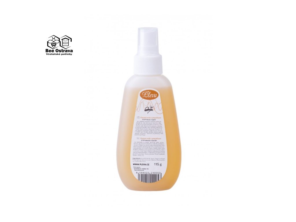 Vlasová voda s propolisem je dokonalý balzám nejenom pro Vaše vlasy, ale i pro pokožku Vaší hlavy. Příznivě ovlivňuje řídnutí vlasů, jejich vypadávání, omezuje tvorbu lupů a blahodárně regeneruje vlasy i pokožku. Vlasová voda se jemně v masírovává do čerstvě umytých vlasů po dobu tří minut. Po aplikaci již vlasy neoplachujeme. Balení může obsahovat přírodní sediment, který nikterak nesnižuje účinnost výrobku. Velikost tohoto balení je 115g.