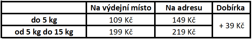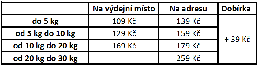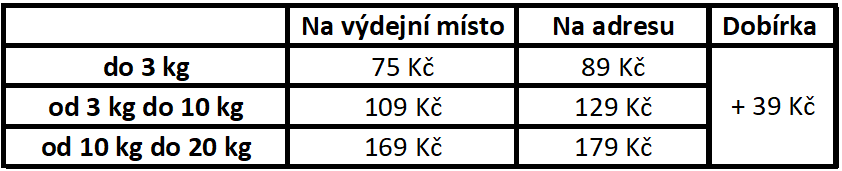 Ceny za dopravu se v košíku počítá automaticky podle váhy zboží.