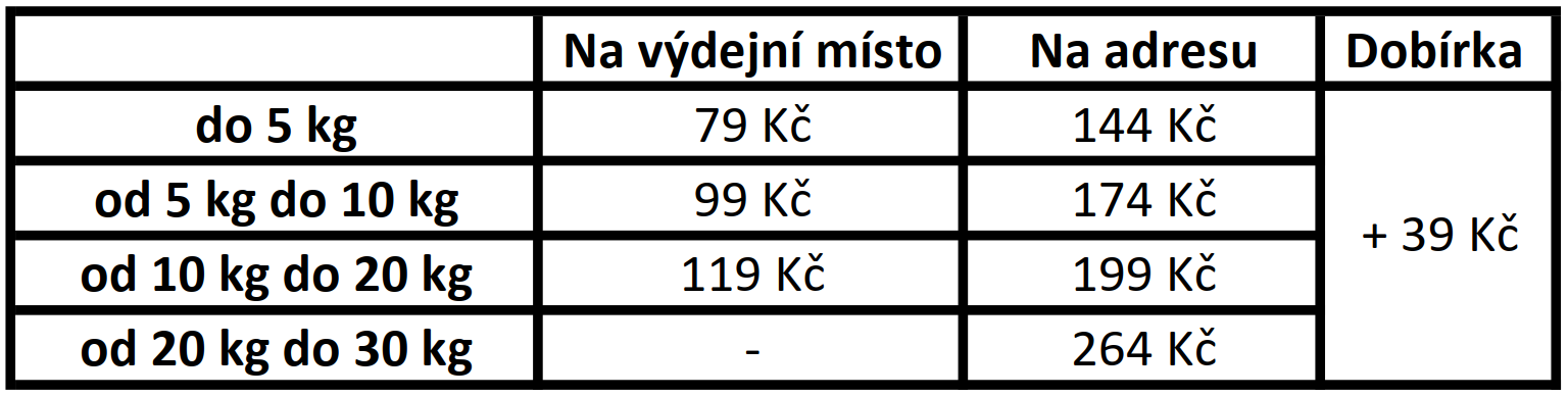 Ceny za dopravu se v košíku počítá automaticky podle váhy zboží.